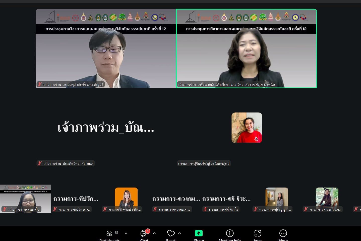 ประธานเครือข่ายบัณฑิตศึกษา มหาวิทยาลัยราชภัฏภาคเหนือ ได้รับเกียรติเข้าร่วมพิธีเปิดและร่วมเป็นเจ้าภาพจัดการประชุมทางวิชาการและเผยแพร่ผลงานวิจัยคัดสรรระดับชาติ ครั้งที่ 12 ในหัวข้อ “การวิจัยทางสังคมศาสตร์ : บทบาทในโลกที่มีความผันผวน” ผ่านระบบออนไลน์ (ZOOM Cloud Meetings)